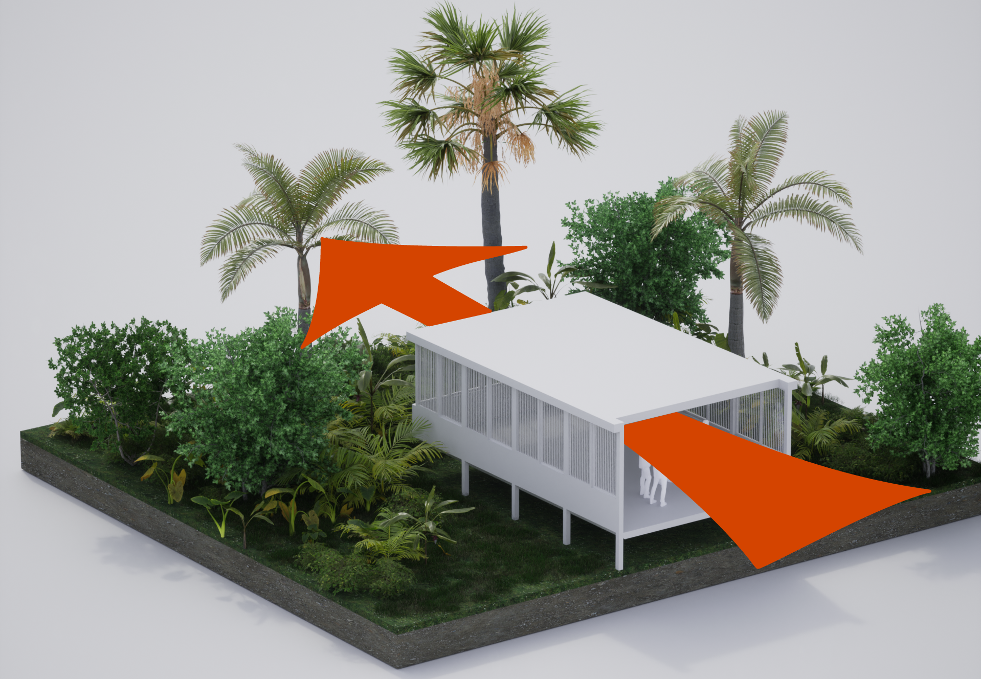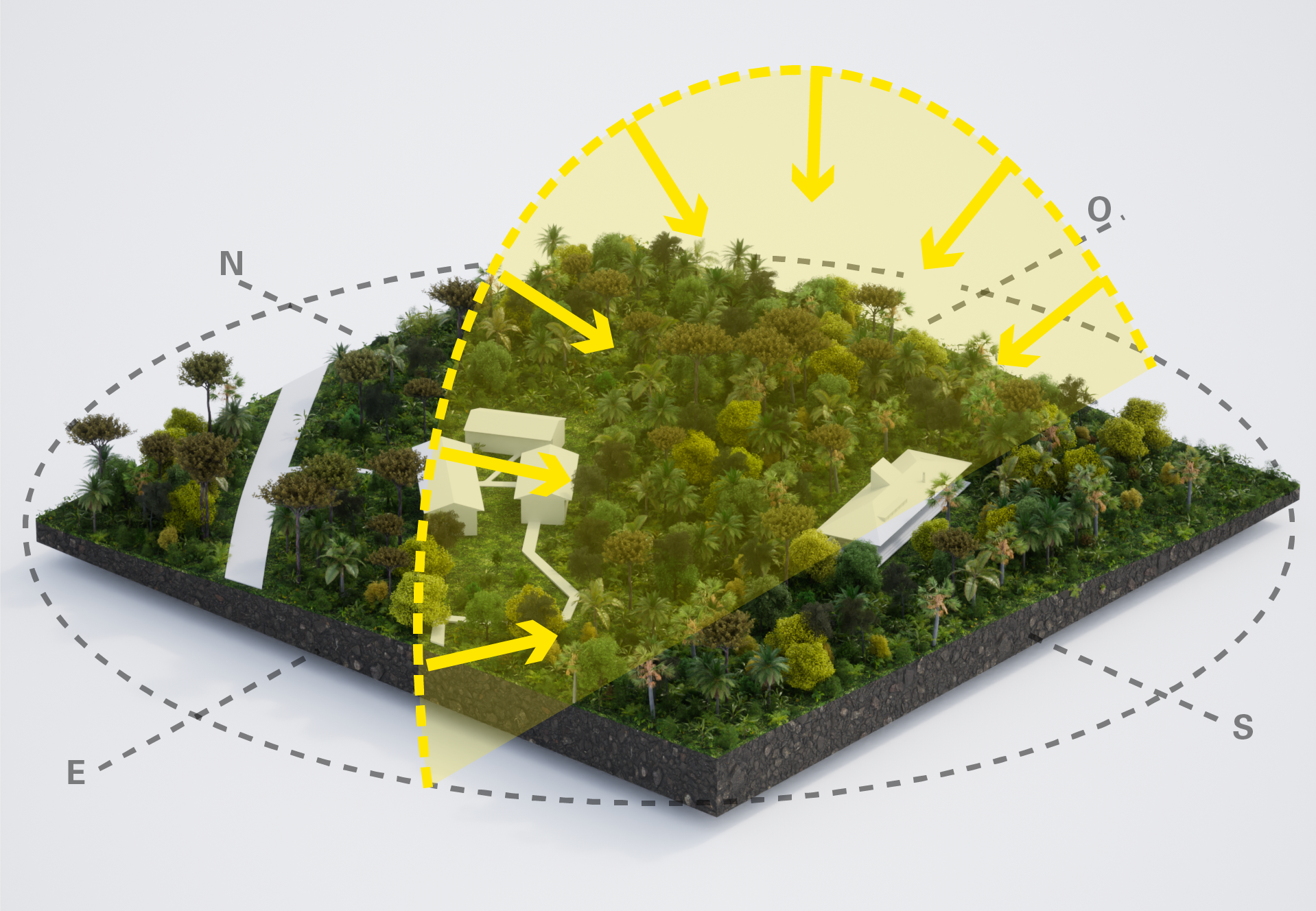 La orientación del edificio aprovecha la trayectoria solar relativamente estable del Ecuador para garantizar el sombreado a lo largo de las fachadas principales orientadas al norte y al sur.
