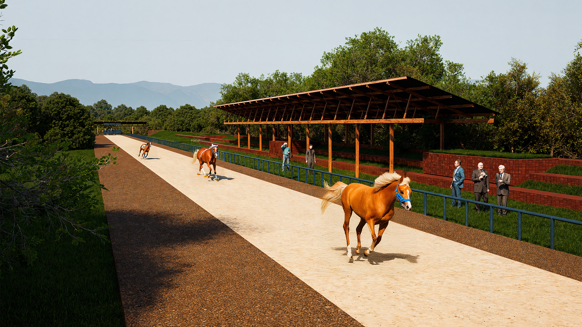 Las piezas arquitectónicas —mercado artesanal, salón de eventos, caballeriza, glamping, muelles y áreas lúdicas— se conciben como arquitecturas de baja huella, tanto física como visual. Sus volumetrías contenidas, cubiertas ligeras y materiales asociados a la tradición constructiva local refuerzan una lógica de permanencia silenciosa, donde la arquitectura acompaña sin competir. Cada edificio se implanta como una extensión del terreno, apoyándose en estrategias de ventilación natural, sombra, control solar y contacto directo con el paisaje circundante.