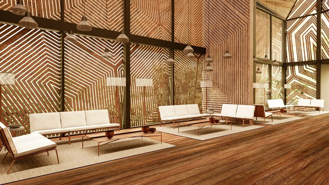 El diseño arquitectónico contempla la construcción de cabañas, un lodge central que integra una cocina tradicional, y un wellness spa, todo dentro de un complejo de gama intermedia. Este enfoque no solo busca mejorar la experiencia turística, sino también mantener la armonía con el entorno natural y cultural de la región. Adicionalmente, como parte de esta iniciativa, se está implementando un proyecto piloto de glamping en el ríoTiputini, con la visión de desarrollar un futuro hotel de alta gama en una nueva área bajo el control de la Comunidad Añangu.